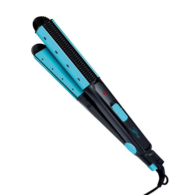 Alisador rizador SYTECH con placas cerámicas, tecnología Wet & Dry, 31W y diseño compacto en color azul.