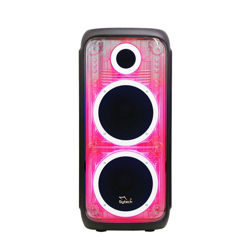 El altavoz portátil SYTECH STORMGLASS 628 (SYXTR628BT) combina potencia, versatilidad y portabilidad en un solo equipo. Incorpora dos woofers de 10 pulgadas que ofrecen un sonido contundente y equilibrado, alcanzando una potencia de 100W RMS (300W PMPO), ideal para animar fiestas, reuniones y eventos.