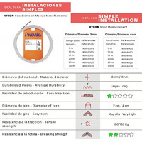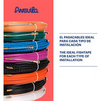 Guia pasa-cables de Nylon monofilamento de Ø 3 mm y 5 metros de longitud, color natural, provisto con terminales fijos, cabeza guia flexible de 6 mm Ø y anilla de tracción fija de 6 mm Ø. El Nylon es el material de mayor efecto memoria por lo que presenta más puntos de rozamiento, adquiriendo de forma original movimiento en espiral por lo que ejerce una menor fuerza de empuje, no siendo aconsejable su utilización en distancias superiores a los 20 o 25 metros.