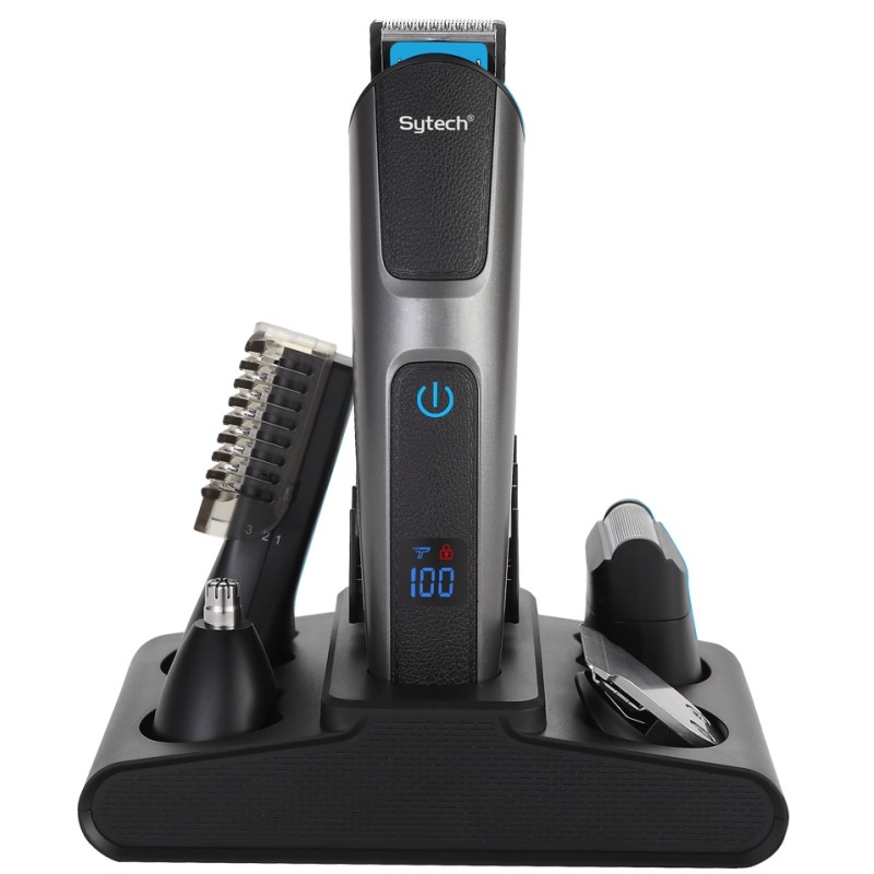Kit corta pelo SYTECH 12 en 1 con pantalla digital, 7 accesorios, recargable y resistente al agua IPX7.