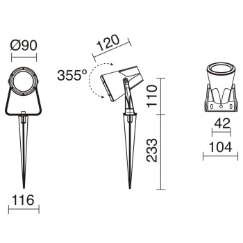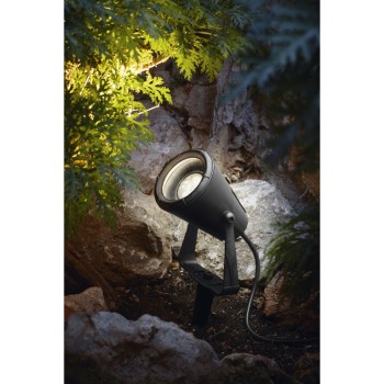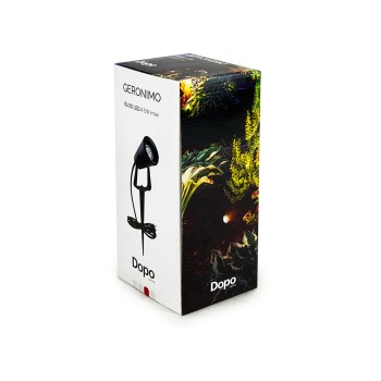 El proyector Geronimo está fabricado en poliamida en color negro, cuenta con IP67. Consta de una piqueta y el proyector con la potencia de 4.5W que tiene el ángulo de rotación de 355º. Está hecho especialmente para iluminar las zonas ajardinadas exteriores.